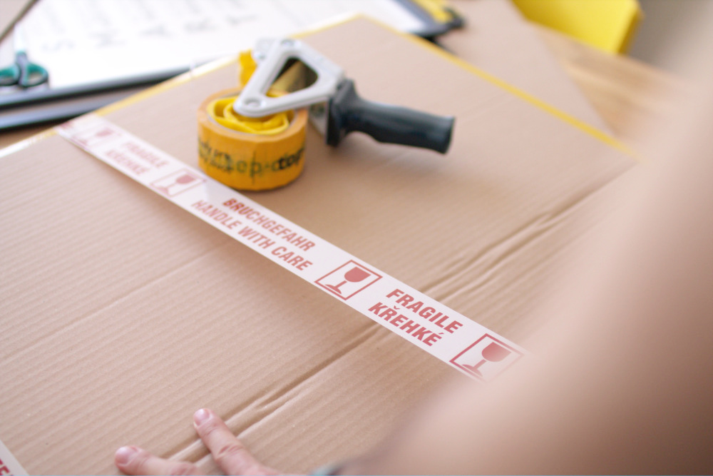 Pevnost krabice podpoříte správným zalepením – ideálně do tvaru písmene H. U těžkých balíků nad 35 kg, při delším skladování nebo náročném transportu doporučujeme použít širší pásku (75 mm), která ušetří spotřebu materiálu a zajistí větší pevnost než běžná 48mm. Pro maximální jistotu přelepte všechny spoje.